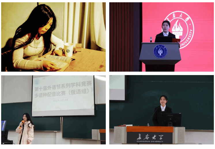 除了在学校内部的活动中获得荣誉,胡琪琪还积极参加了学院举办的一系列学科竞赛。在配音、唱歌等比赛中,她展现了自己的才华,取得了优秀的成绩,这让她感到非常鼓舞。凭借这些出色的表现,她荣获了"双创之星"的荣誉称号,并且在第三届"英语世界"杯写作大赛中获得了全国二等奖、俄语奥林匹克竞赛中获得三等奖。这些荣誉不仅是对她个人努力和才华的认可,也是对她创新能力和综合素质的赞扬。此外,胡琪琪还参加了吉林省举办的乡村振兴大赛,并获得了省级的优秀奖。