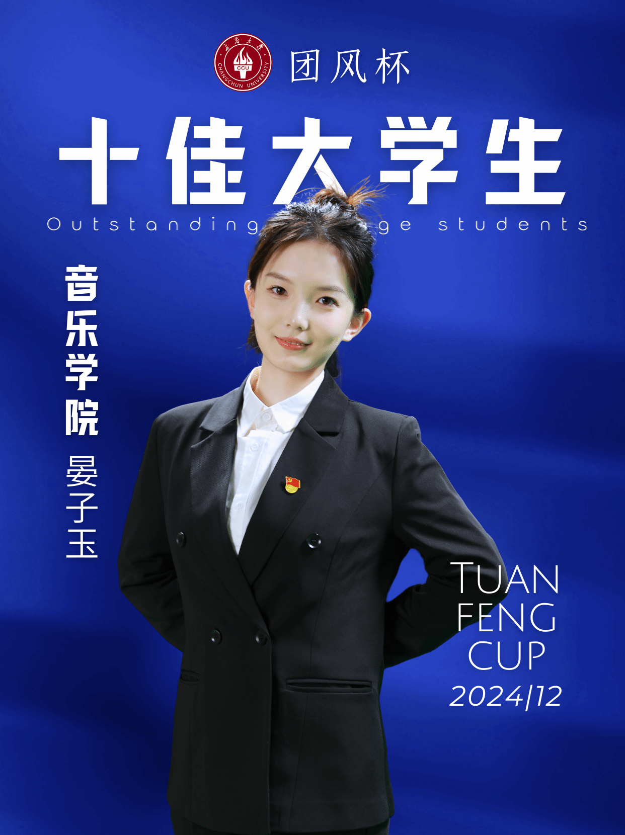 晏子玉,女,汉族,音乐学院2021级音乐表演(声乐方向)专业学生,中共党员。