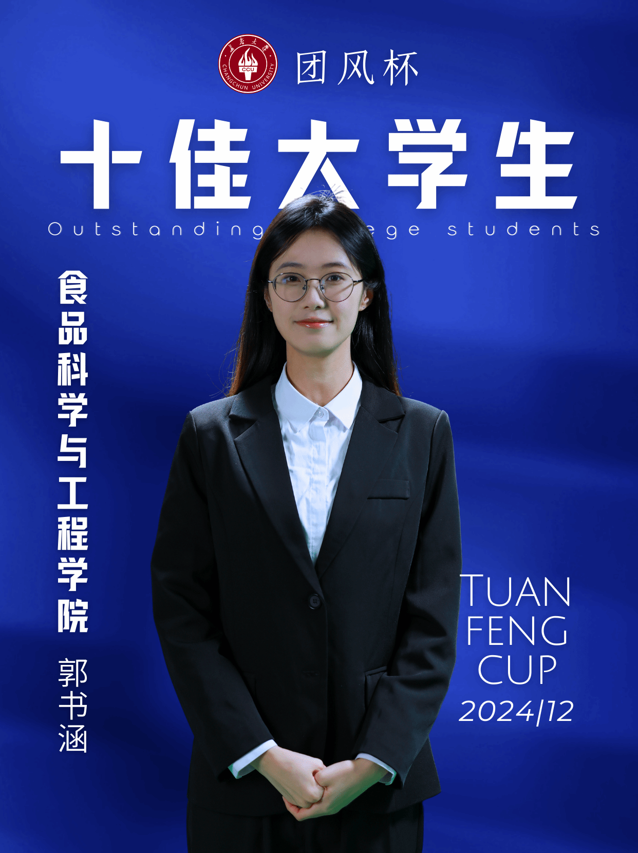 郭书涵自进入到大学校园,坚持以理想信念指引方向,用积极饱满的精神状态面对学习生活,在思想成长、学习科研、工作服务多方面不断进步,取得优异的成绩,用实际行动诠释了新时代青年的担当与追求。